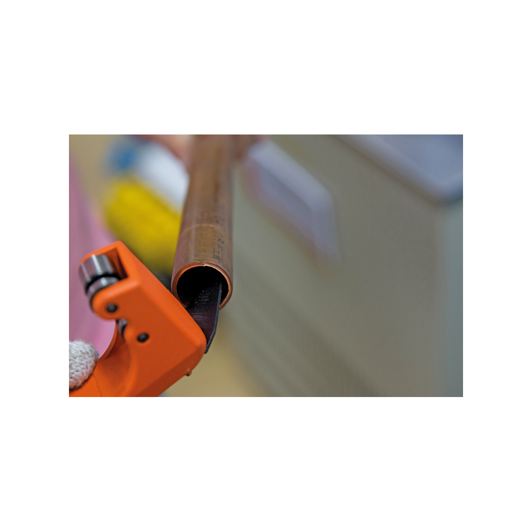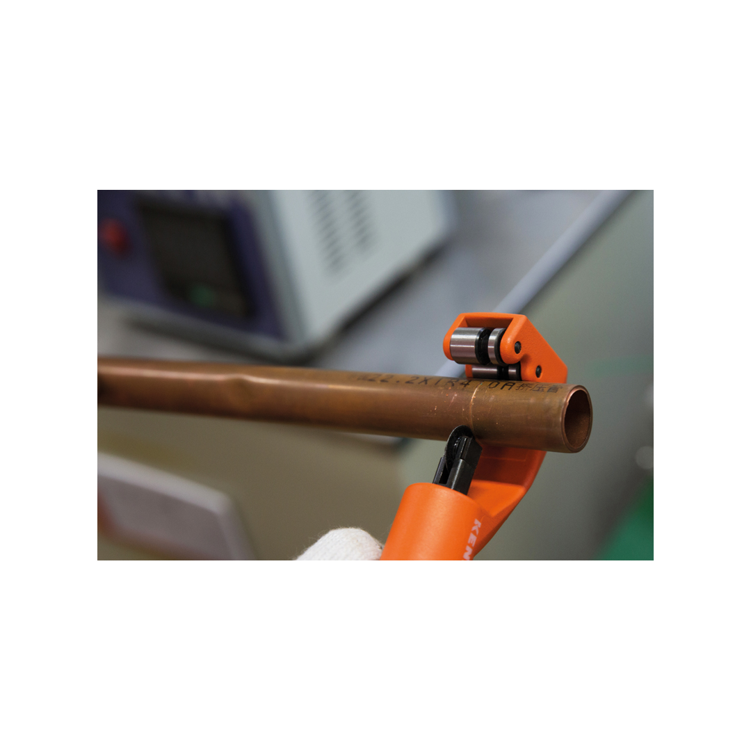 Der KENDO Profi-Rohrschneider ermöglicht Ihnen präzise Schnitte in Kupfer- und Aluminiumrohren mit einem Durchmesser von 3 bis 30 mm. Dank der stufenlosen Verstellung und der maximalen Wandstärke von 2 mm erzielen Sie stets saubere Schnittkanten. Ein integrierter Entgrater sorgt für perfekte Ergebnisse. Das stabile Zinkdruckgussgehäuse mit pulverbeschichteter Oberfläche bietet zuverlässigen Korrosionsschutz und garantiert eine lange Lebensdauer – ideal für den professionellen Einsatz.